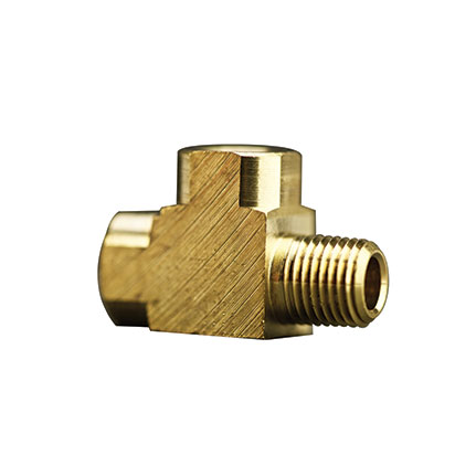 Fisnar 560945 Brass Street T Connector is designed for connecting fluid dispensing components. 0.25 in NPT Male x 0.25 in NPT Female.
