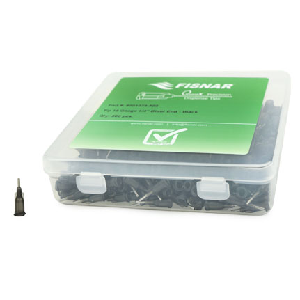 Fisnar QuantX™ 8001074-500 Black stainless steel straight cannula blunt end needle tip. It is epoxy sealed to a double helix Luer Lock polypropylene hub and has a polished burr-free finish for smooth fluid dispensing. 1/4 in x 16 ga.